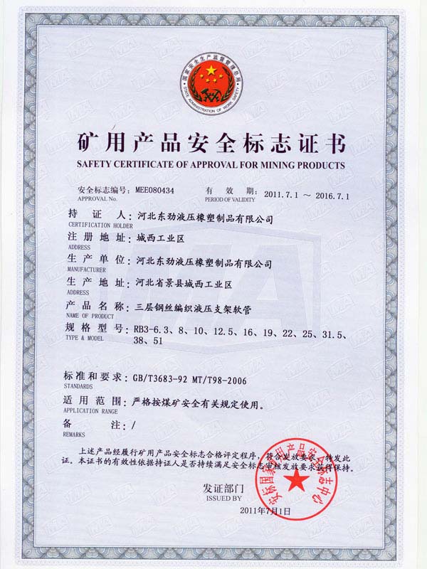 注冊資金7000萬,生產設備300多臺套,檢測設備300多臺件,膠管900萬標米,各類管件接頭2億余件,膠管組合件1億余套。